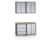 Choose your ideal assortment of lockable cabinets and heavy-duty shelves. The combination of TekPanel and full-length brackets allows everything to be stored off the floor and easily moved as needed.