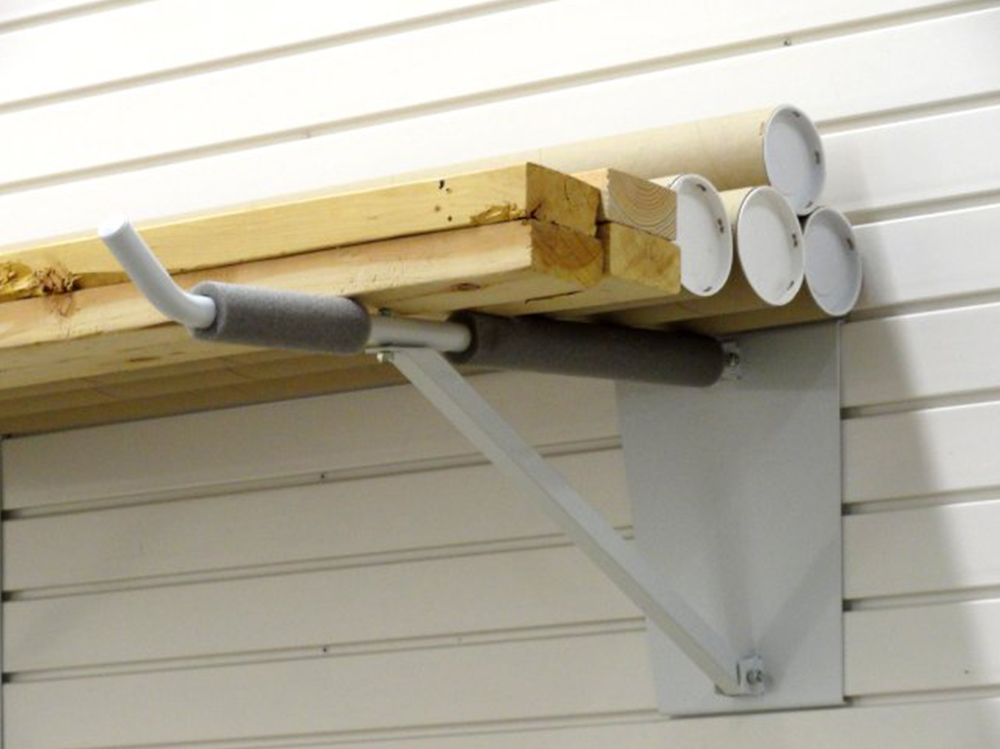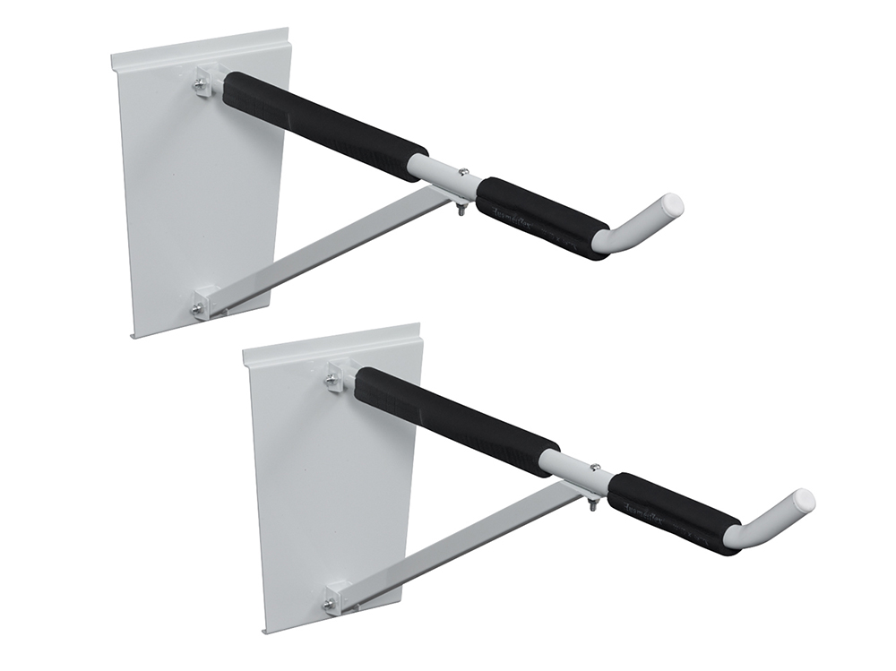 GT4006• Includes double armed bracket with two padded sleeves • Store baby strollers, wheel barrels, chairs, leaf blowers, hedge cutters, folding chairs, ladders and more • Full-length bracket that mounts into TekPanel provides superior stability and strength • Padded arms prevent damage to hung items and bracket