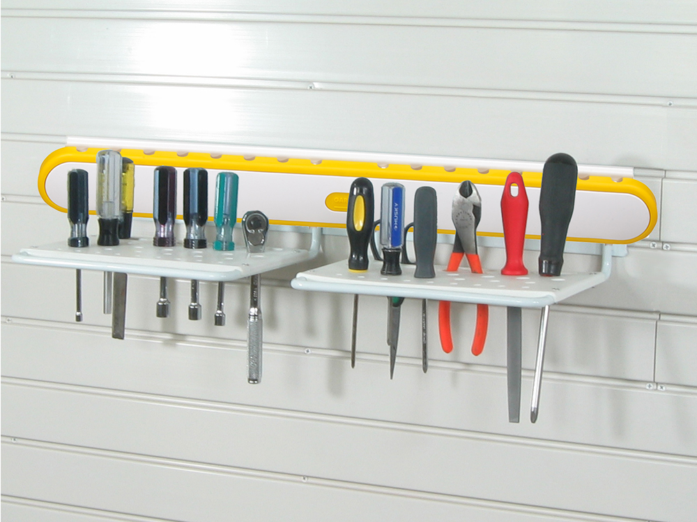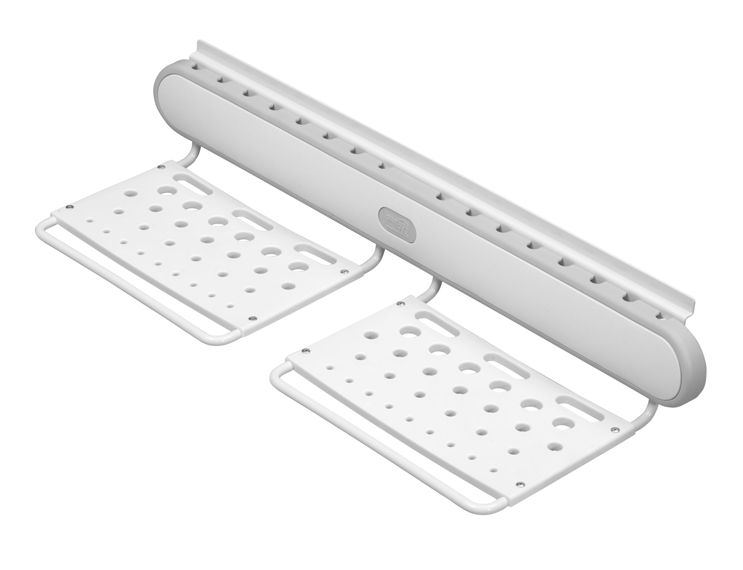 GT4006• Includes double armed bracket with two padded sleeves • Store baby strollers, wheel barrels, chairs, leaf blowers, hedge cutters, folding chairs, ladders and more • Full-length bracket that mounts into TekPanel provides superior stability and strength • Padded arms prevent damage to hung items and bracket