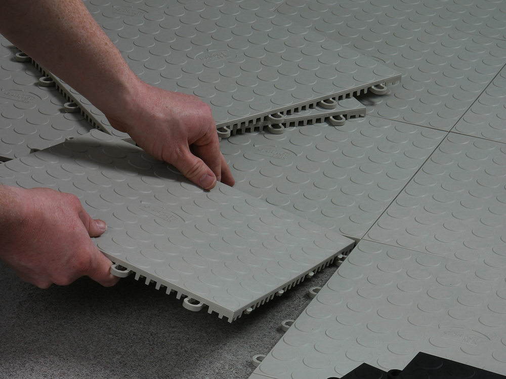 - Floats above the concrete garage floor for airflow to prevent mildew and trapping of water