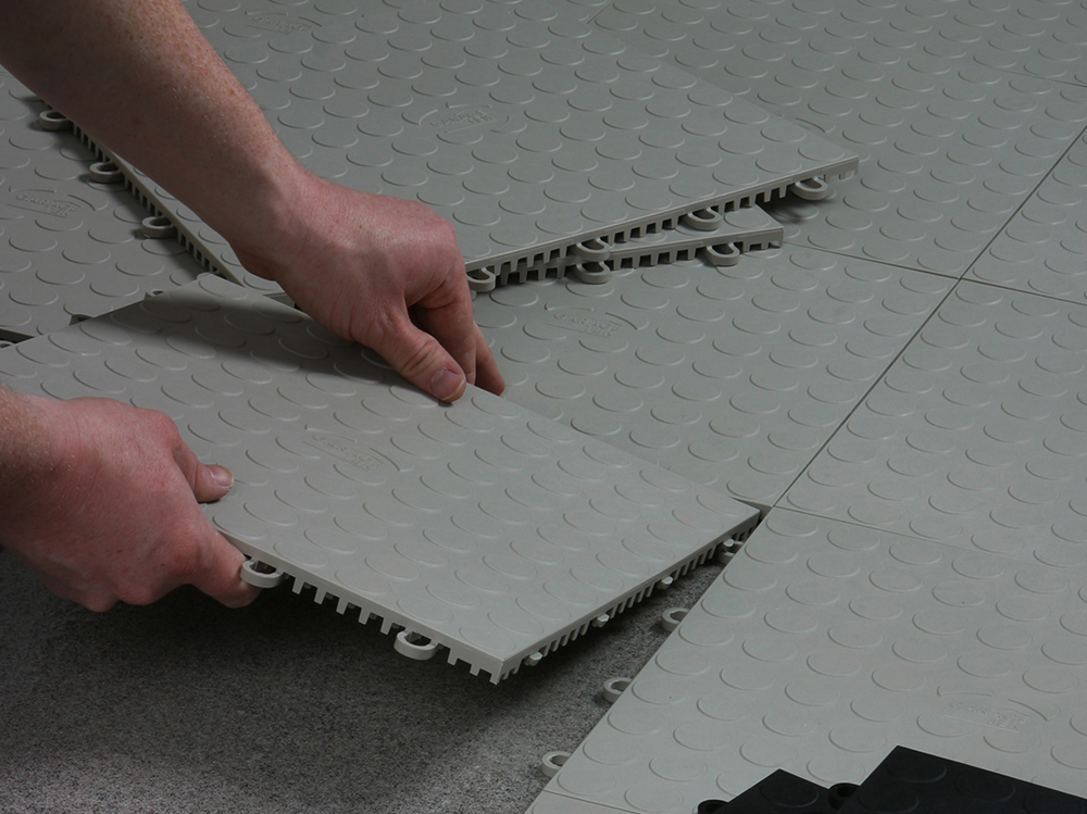 - Floats above the concrete garage floor for airflow to prevent mildew and trapping of water